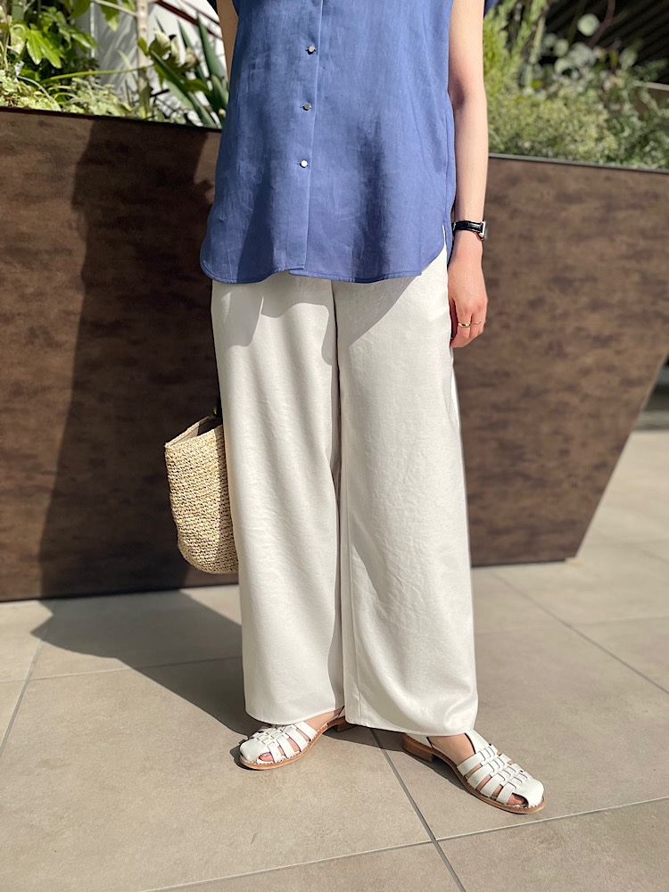 着心地:軽く柔らかい素材でストレス無く穿けます。薄手ですがラインも拾わず、白は裏地付きで透けないので夏まで活躍してくれるパンツです。