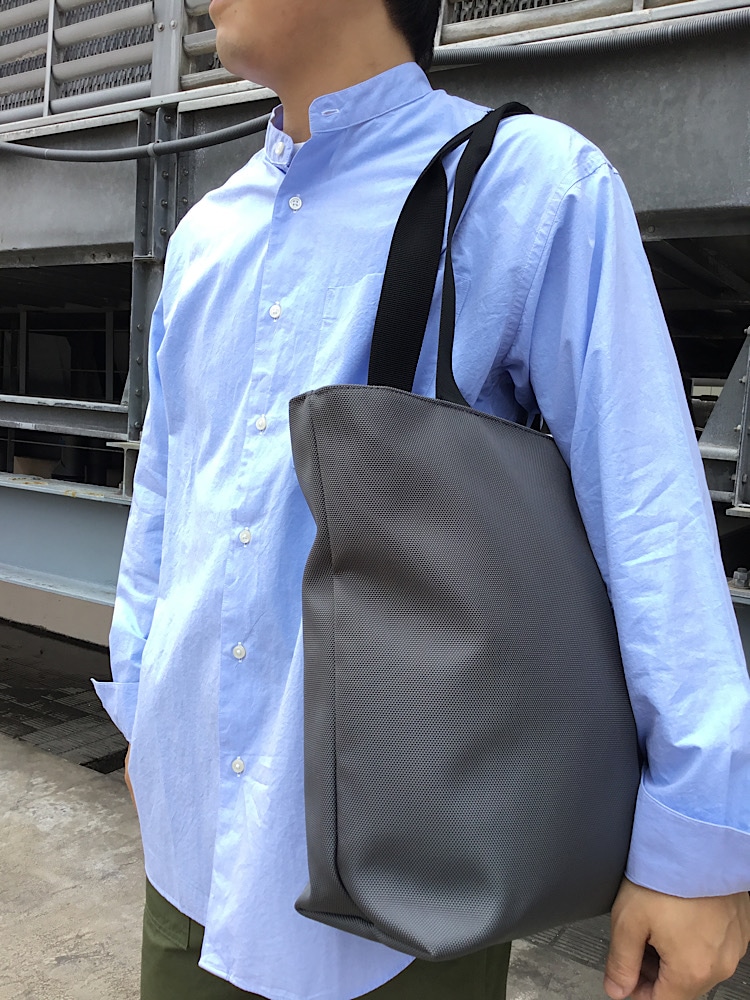 素材感: 淡いブルーが特徴的なバンドカラーシャツ。色味が爽やかな為、春〜夏にオススメです。