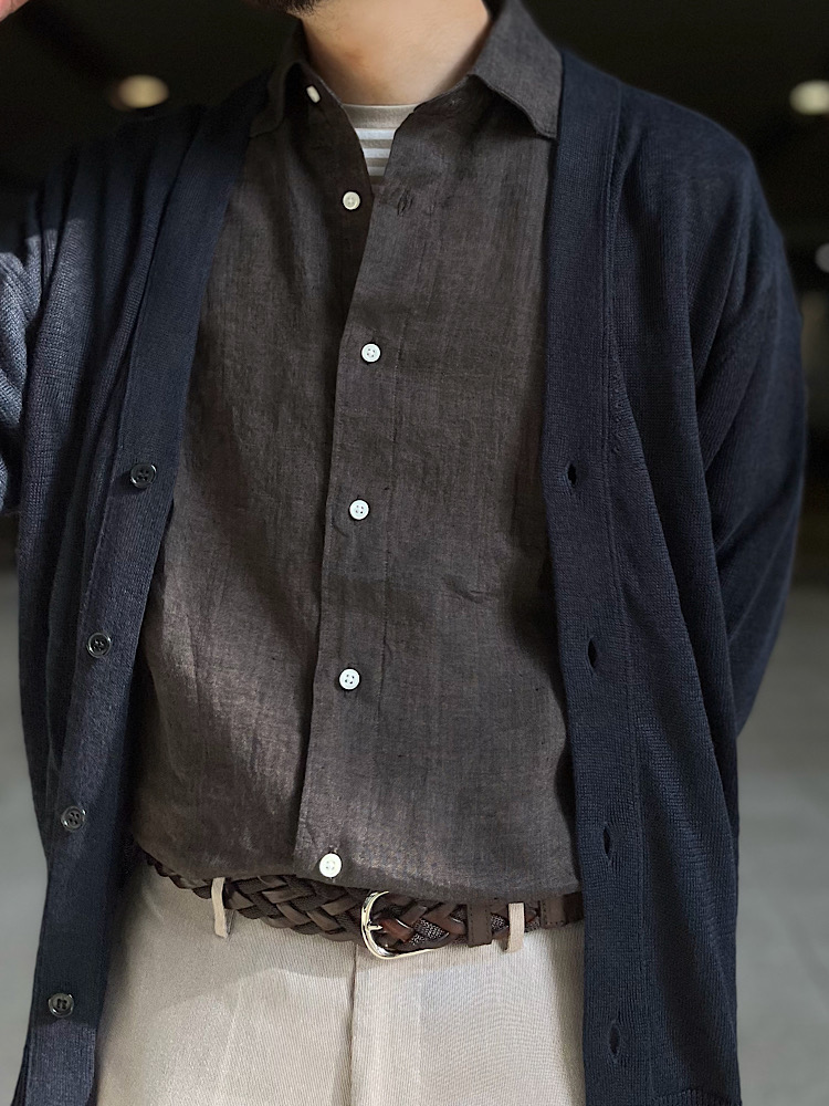 〔75〕SHIPS: イタリア製 レザー コンビネーション メッシュ ベルト
