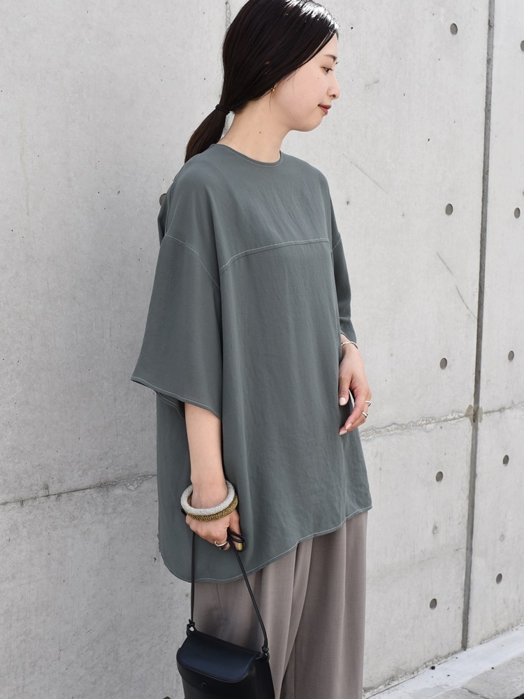 着心地:とても軽くストレスフリーな着心地。透け感があるので同系色のインナー合わせをおすすめします。