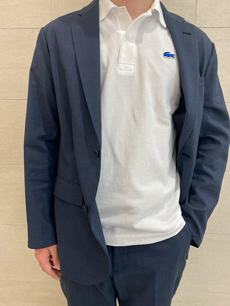 【素材感・着心地】毎年人気のラコステのships別注ポロシャツ。着心地がとても良くキレイな見た目なので、一枚でもインナーとしても着用できる。