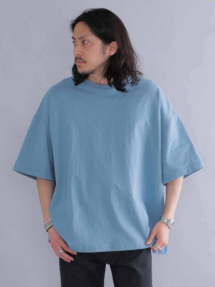 ビッグシルエットのヘビーウェイトTを使用したトレンド感あるVラインスタイル