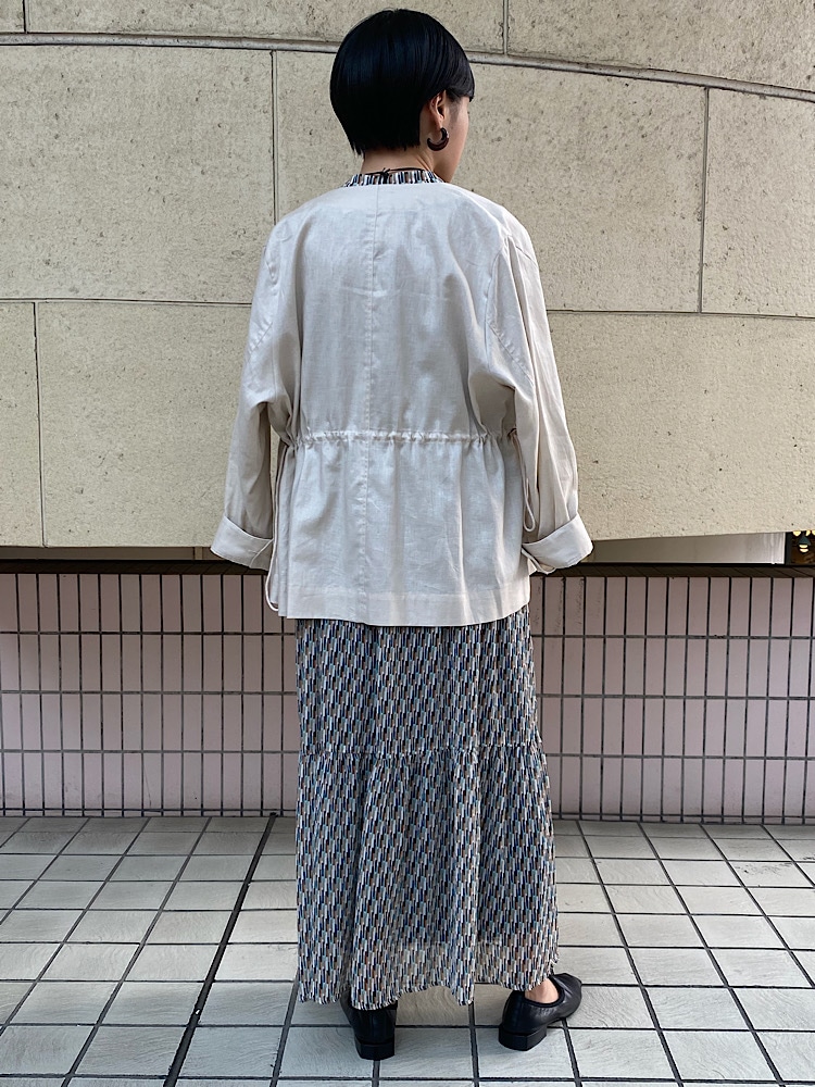 ウエストにドローコードが付いていますが、絞らなくてもストンとしたシルエットでスッキリしています。