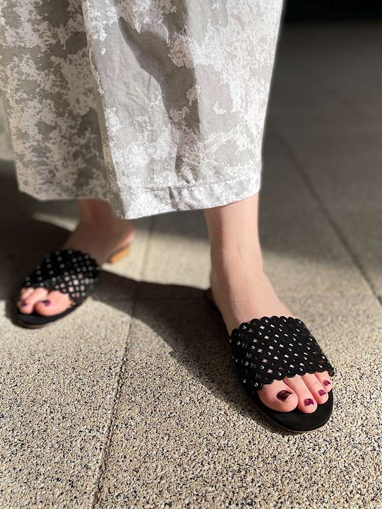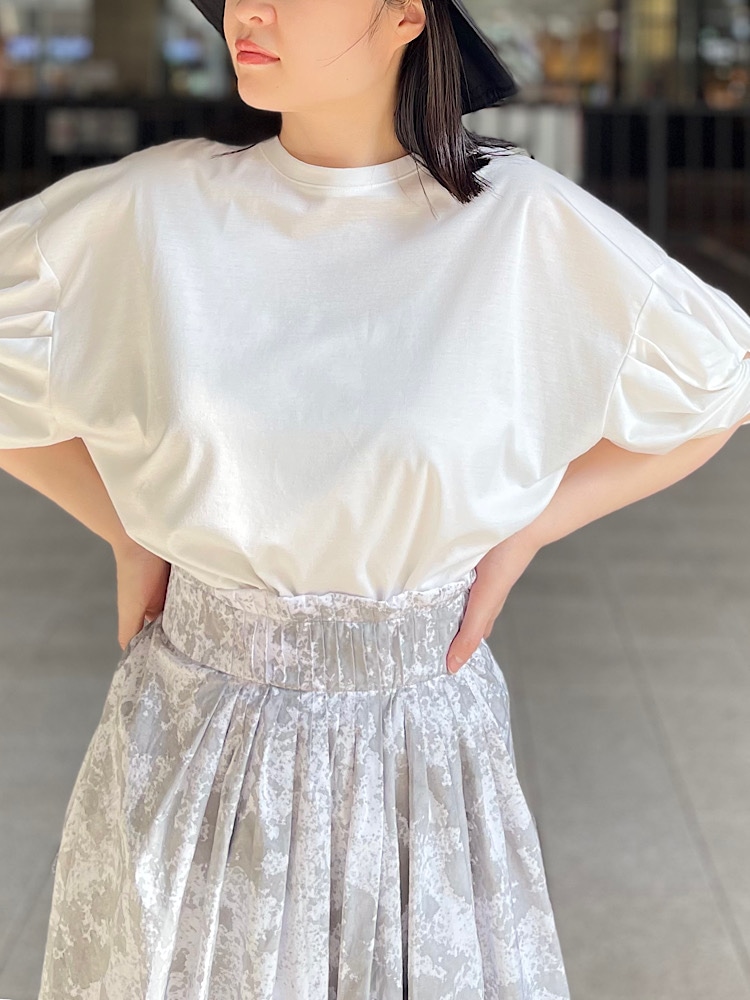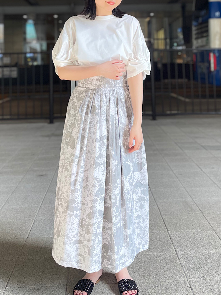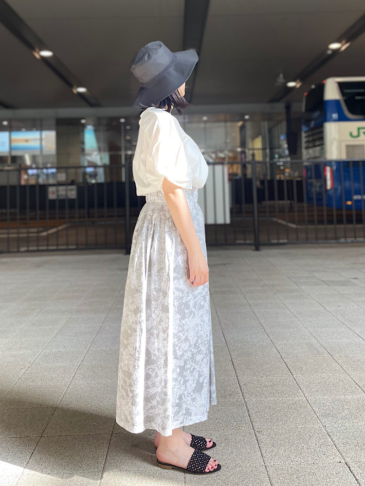 最近アウターなしでも過ごせるくらいぐっと気温が上がってきましたね。サンダルを履きたかったので、ボトムスはボリュームのあるスカートで少し重さを出してみました。