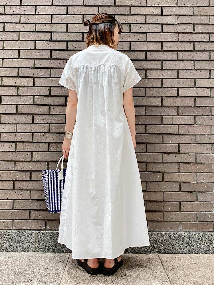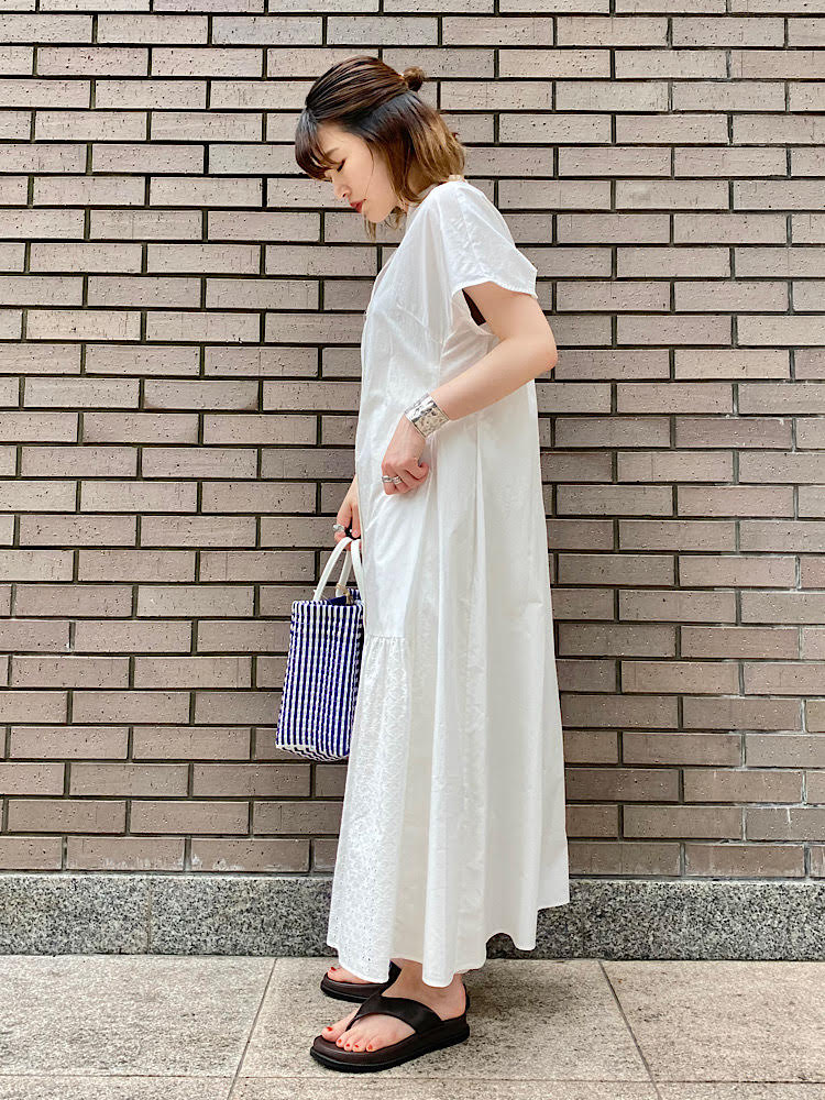 真っ白の爽やかなワンピースを一枚でサラッと着用