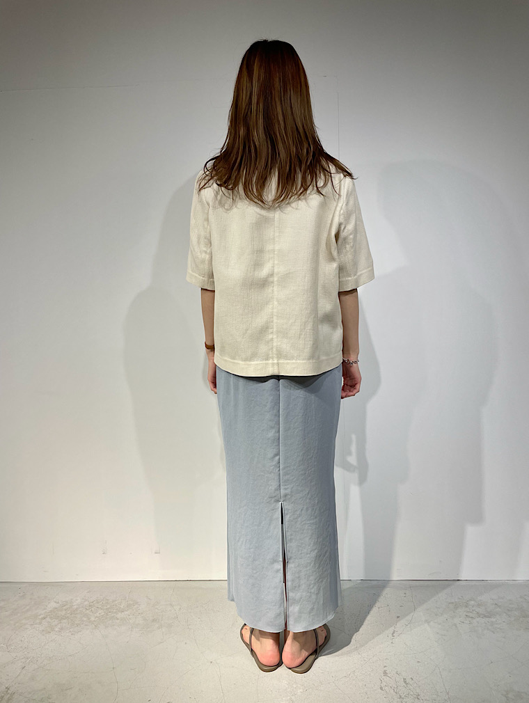 【素材感・着心地】ややシャリのあるワッシャー素材。シアー感が強すぎないので着用しやすいです。