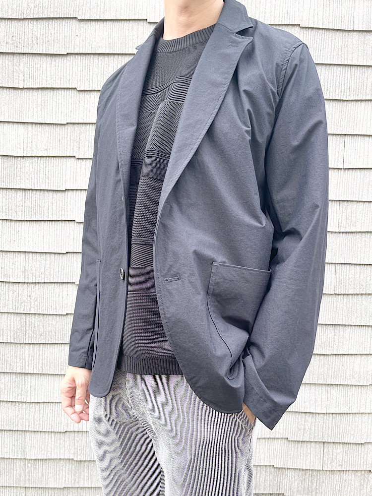 素材感/着心地:Mでジャスト、Lでややゆとりが出ました。夏場特に快適なシアサッカーです。ストレッチも効いています。