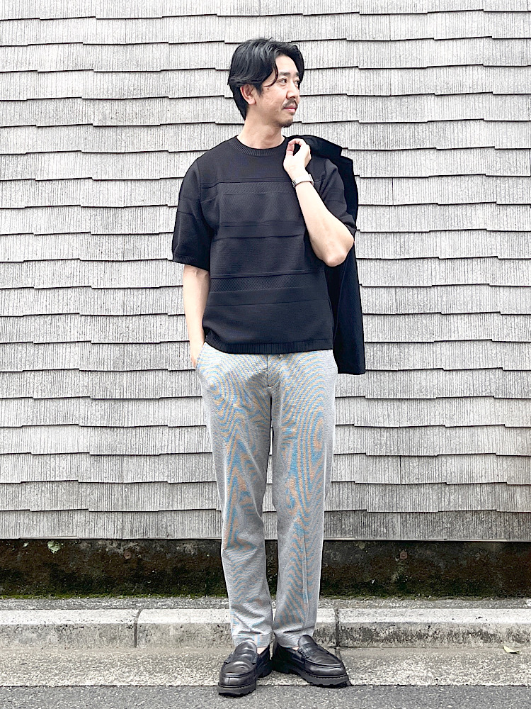 ビジカジコーデです。どのアイテムもオンオフ兼用で着用いただけます。