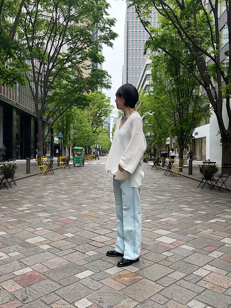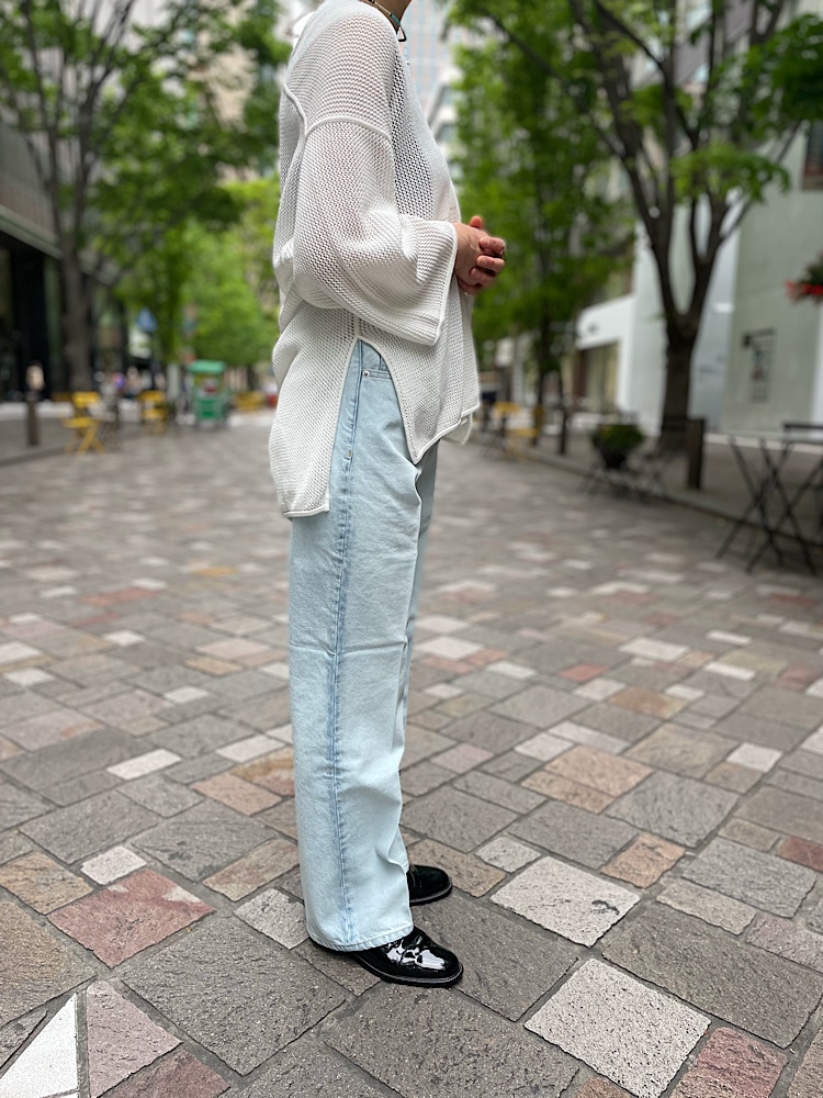 ■素材感・着心地:コットン100%。センタープレス入りストレートデニム。大人の女性にはいて欲しい。
