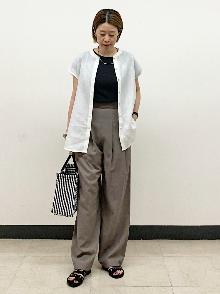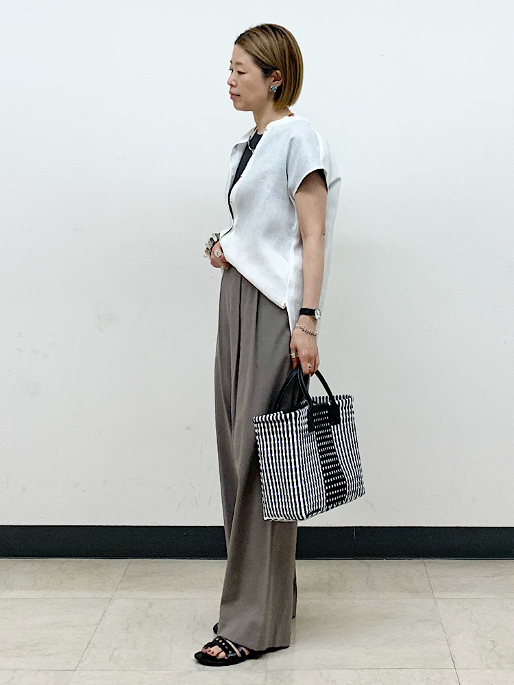 無彩色でまとめたコーディネート。アクセサリーでさりげなく色を差しました。