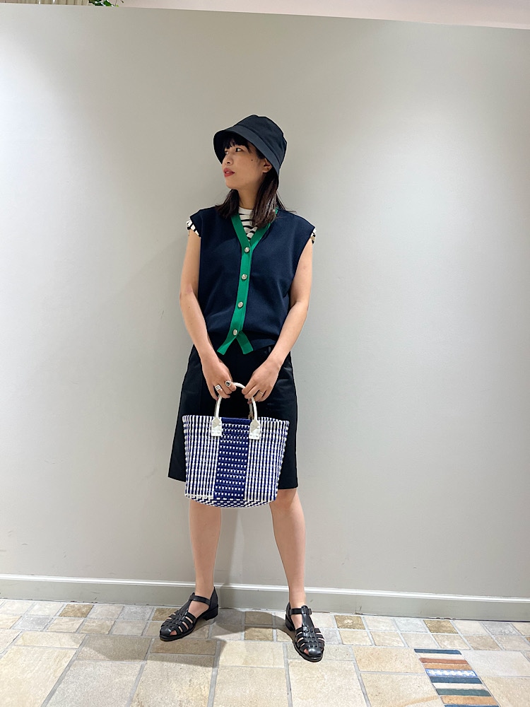 素材感・着心地:伸縮性のある素材感です。グリーンの配色でメリハリがでます