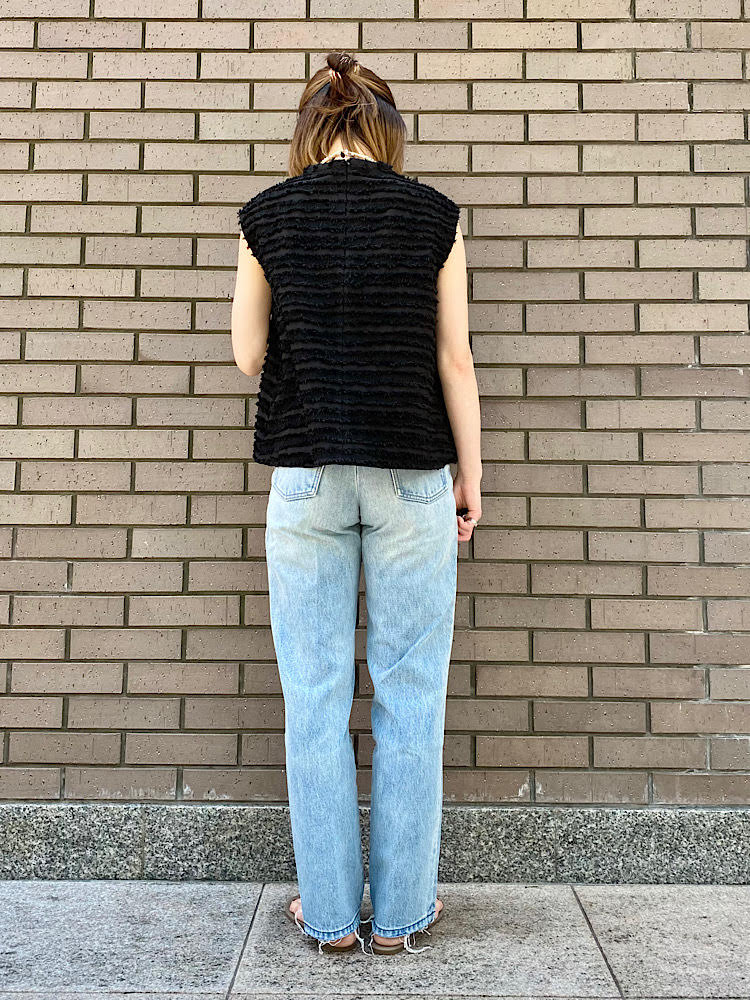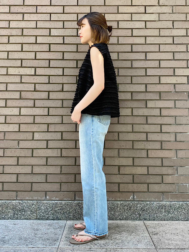 コンパクトな着丈なのでボリュームのあるボトムとも