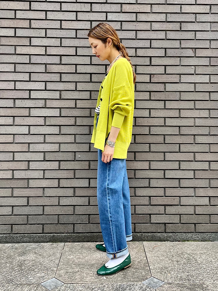 素材感・着心地:伸縮性のあるデニム生地です。太すぎないストレートのシルエットなので合わせるアイテムを選びません。靴の選び方でキレイ目にもカジュアルにも着用できます