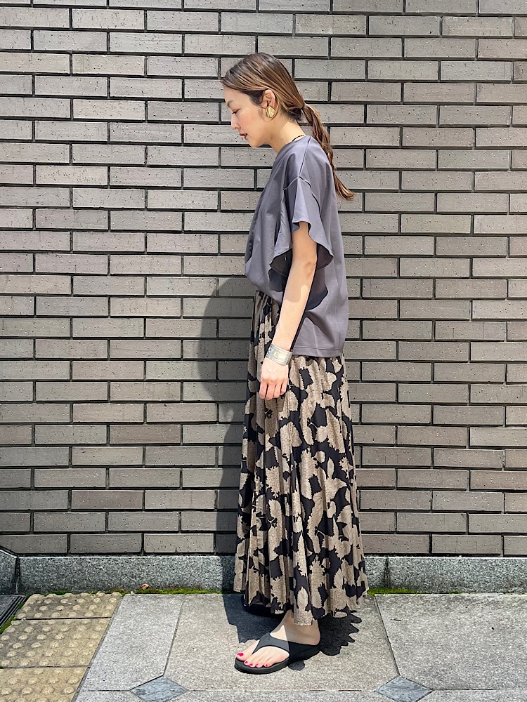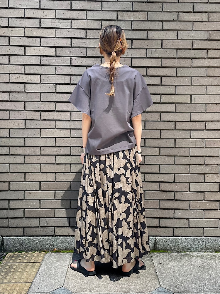 素材感・着心地:レーヨンのさらりとした素材。光沢感はありません。裏地が付いており裾にかけボリュームのあるシルエットです