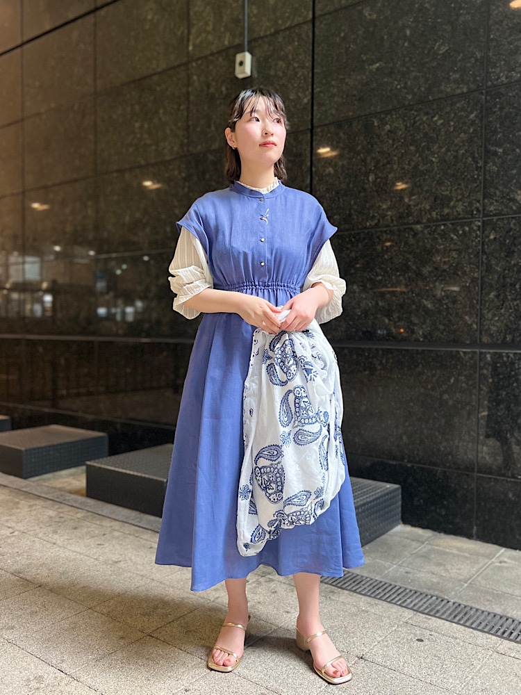 麻特有のシワ感がなく、綺麗めに着ていただけるワンピースです。