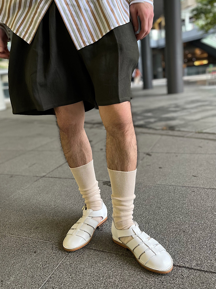 サイズ感:大きめのサイズ感です。裾幅が広く、パキッと取られたセンタープレスが特徴的です。