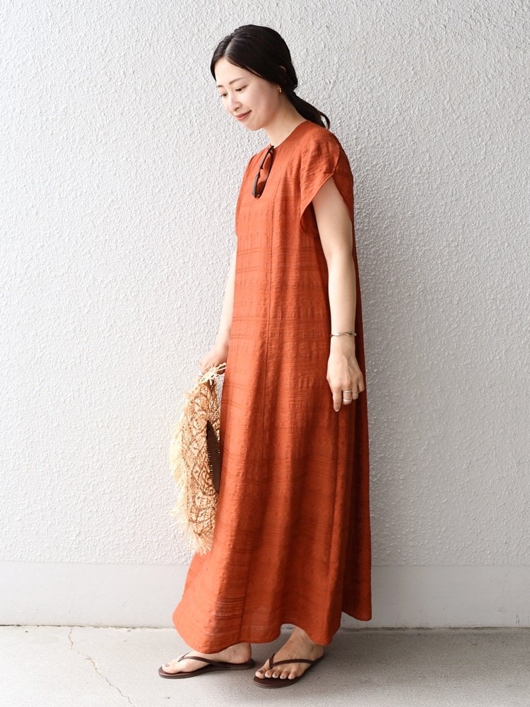サイズ感:身幅、袖幅、どちらも程良くゆとりがあります。着丈は足首くらいの長さ。