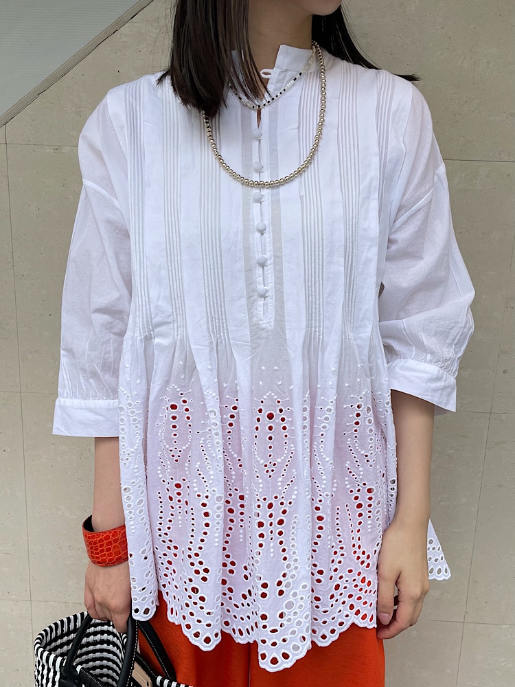 着心地:インド綿でとっても涼しげな素材感です。ピンタックと刺繍のデザインがポイントです◎