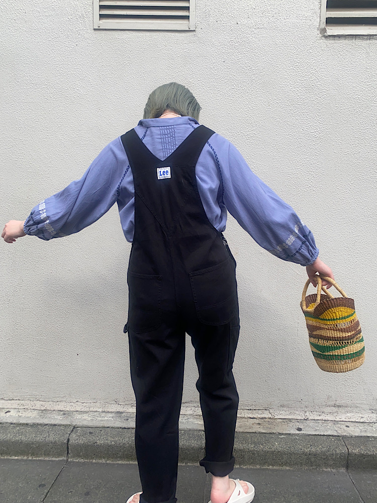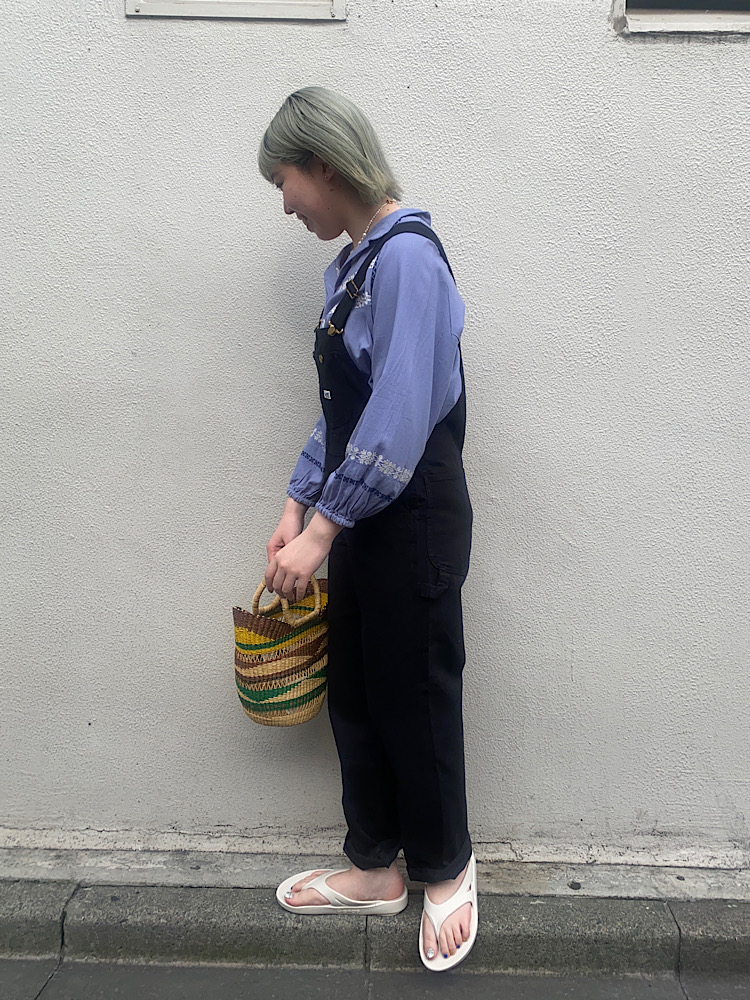 柔らかく薄めの生地感なのでボトムスにインしたスタイルにもオススメです。