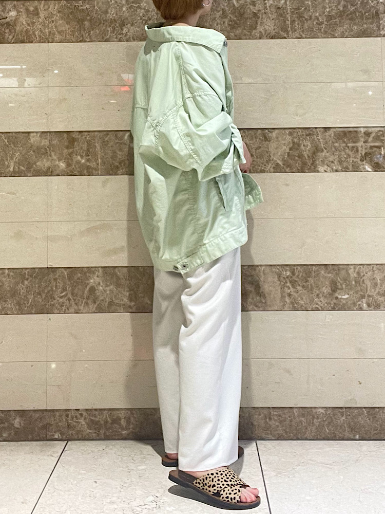 透明感を含んだリラックスコーディネート。色づかいがポイントです。ナチュラルに淡いアースカラーでまとめました。
