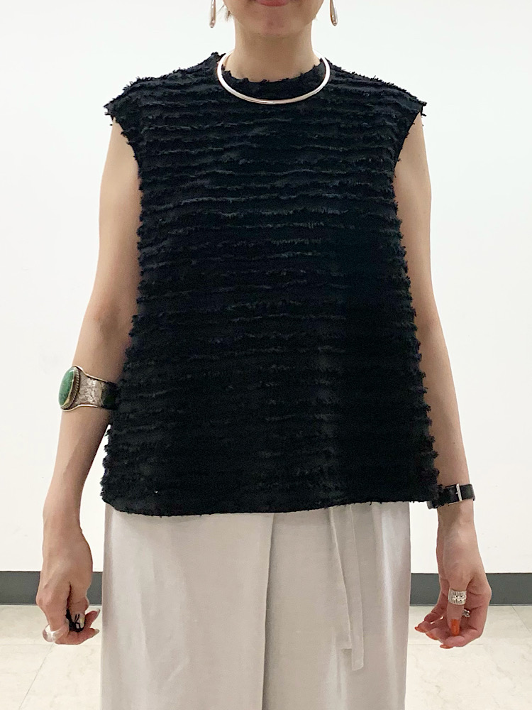着心地:表面は、フリンジが施された素材ですが、裏はさらりとした風合いなので着やすいです。意外と薄手なので、見た目より軽く感じます。