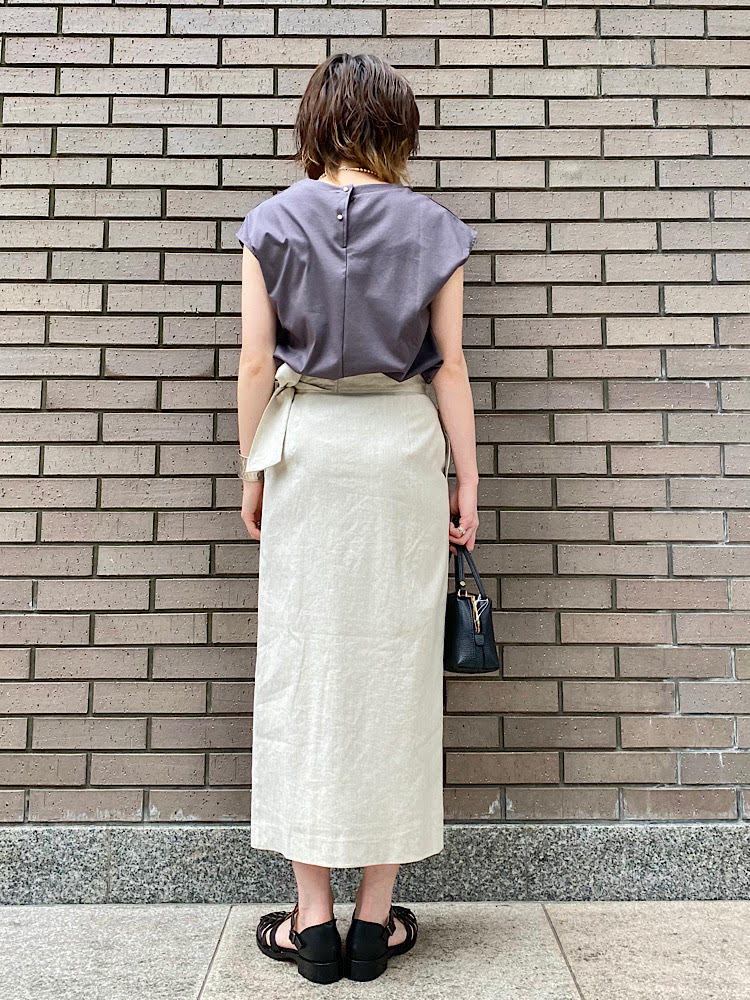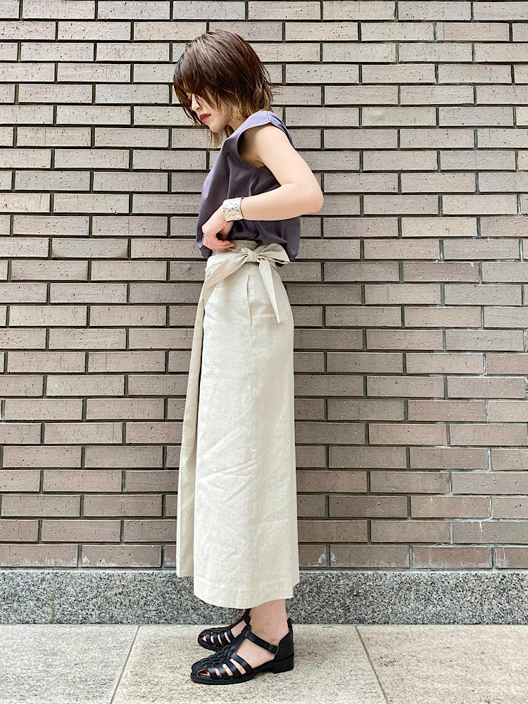 リネン混のサラッとした生地感で、ややハリ感あり