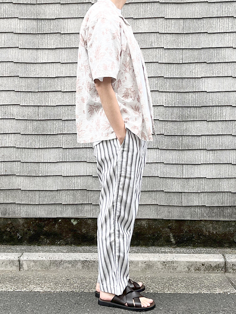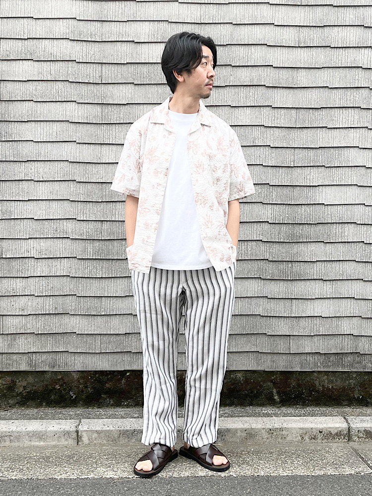 nowarttのオープンカラーシャツを使用したコーディネートです。クリーンな白でまとめました。