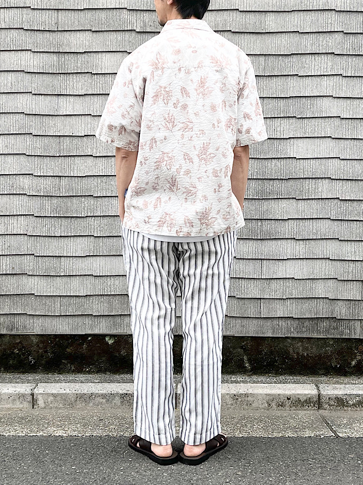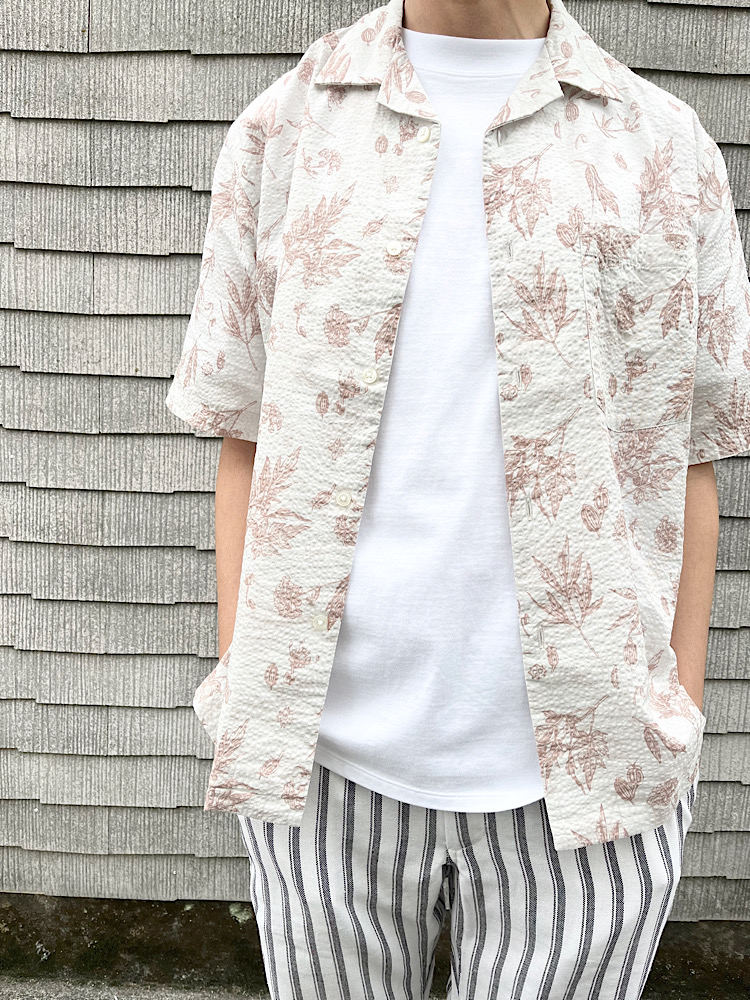 素材感/着心地:サッカー生地に目を引くテキスタイルが特徴です。
