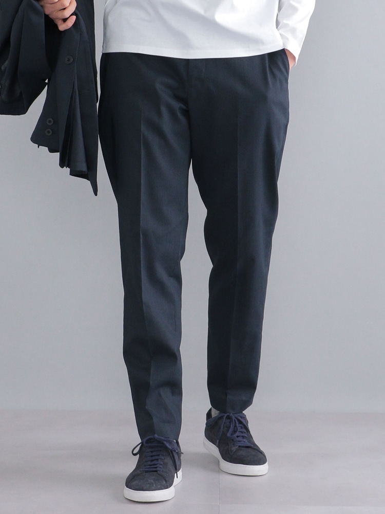 SOLOTEXと麻をブレンドした清涼感のあるセットアップ。