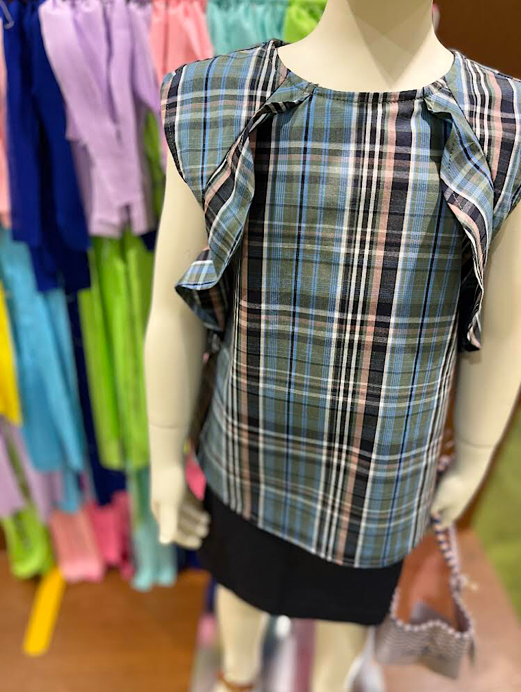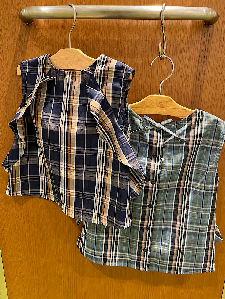 チェックブラウスはフロントにフリル、バックにリボンが付いているのでどこから見ても可愛いですよ♪
