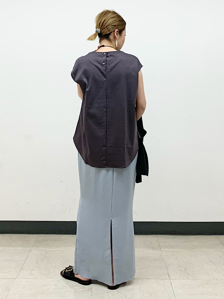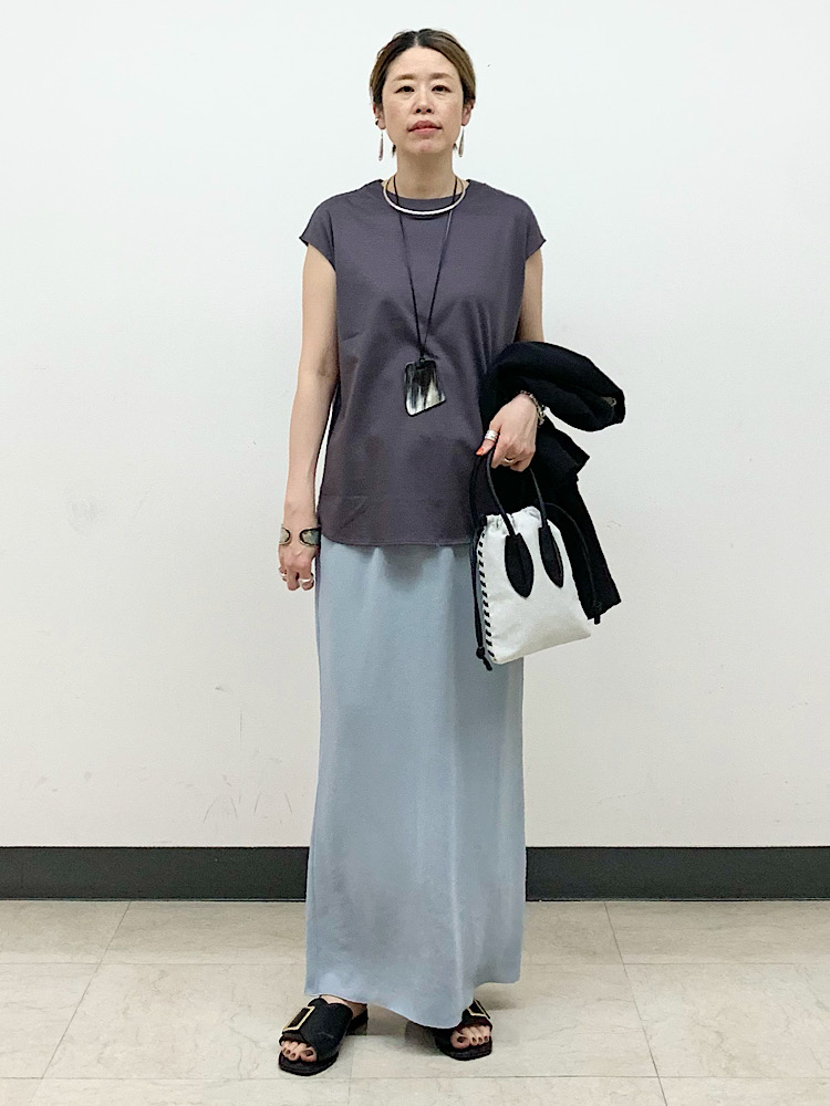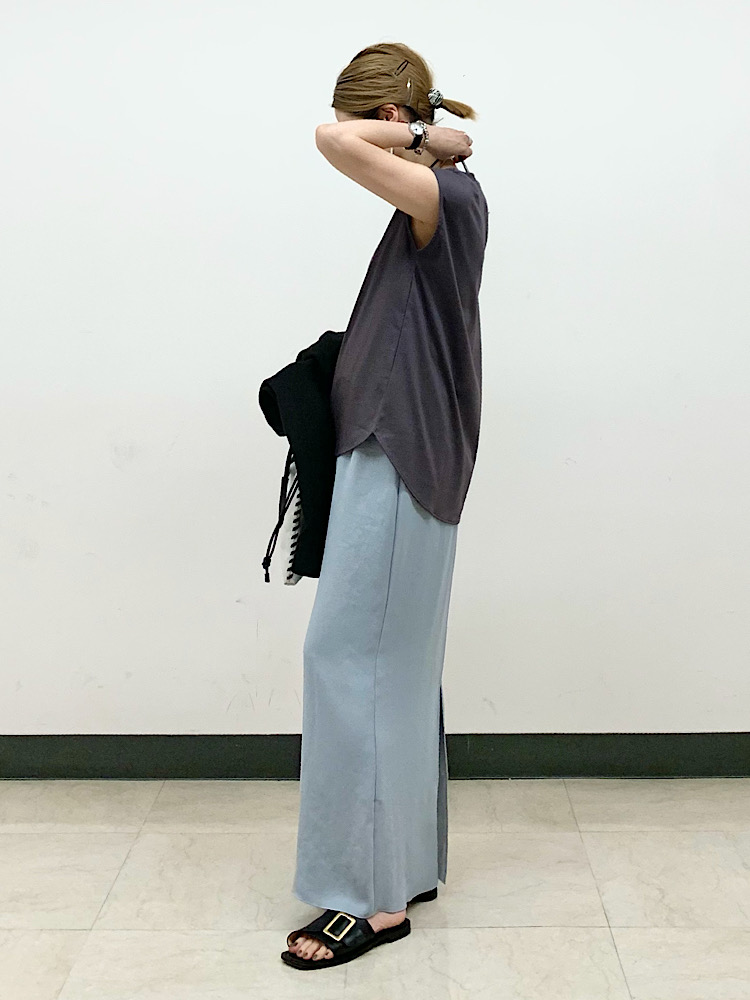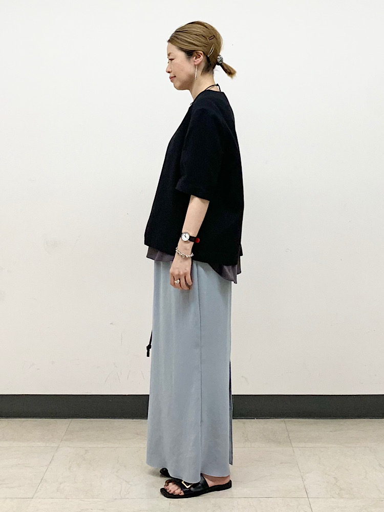 着心地:良い意味で綿とは思えない着やすさ。やや光沢感もあり、ブラウス見えしつつも伸縮性があり着心地は抜群です。