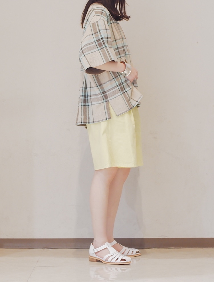 着心地:艶もあるコットン素材。膝はでますがシルエットはシンプルなので色で遊べる一本です!