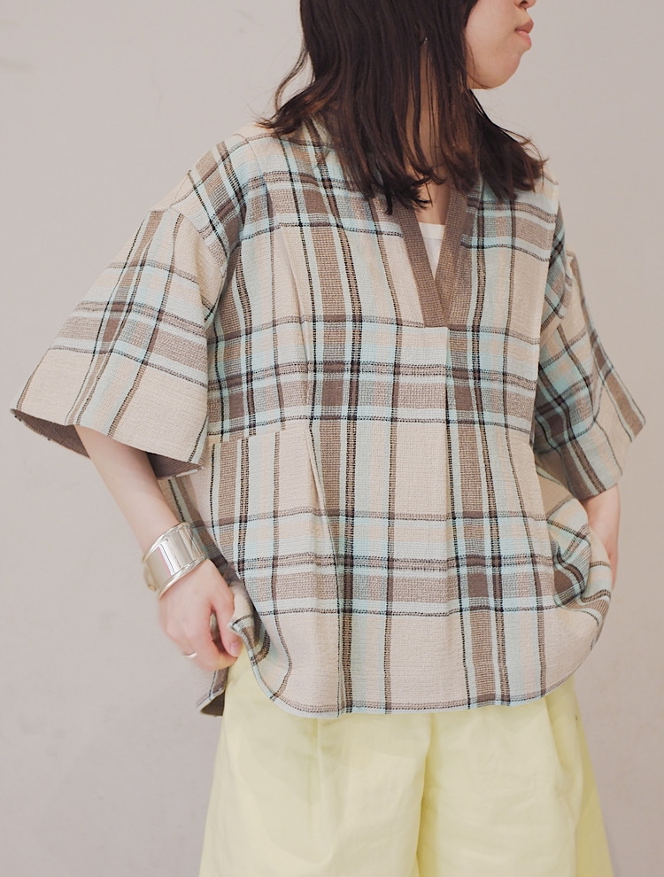 着心地:Tシャツでもブラウスでもないとても柔らかい着心地で、夏の暑い時期も涼しく着られそうです◎