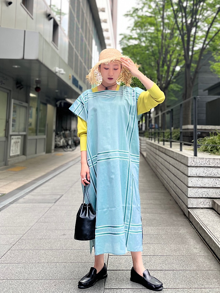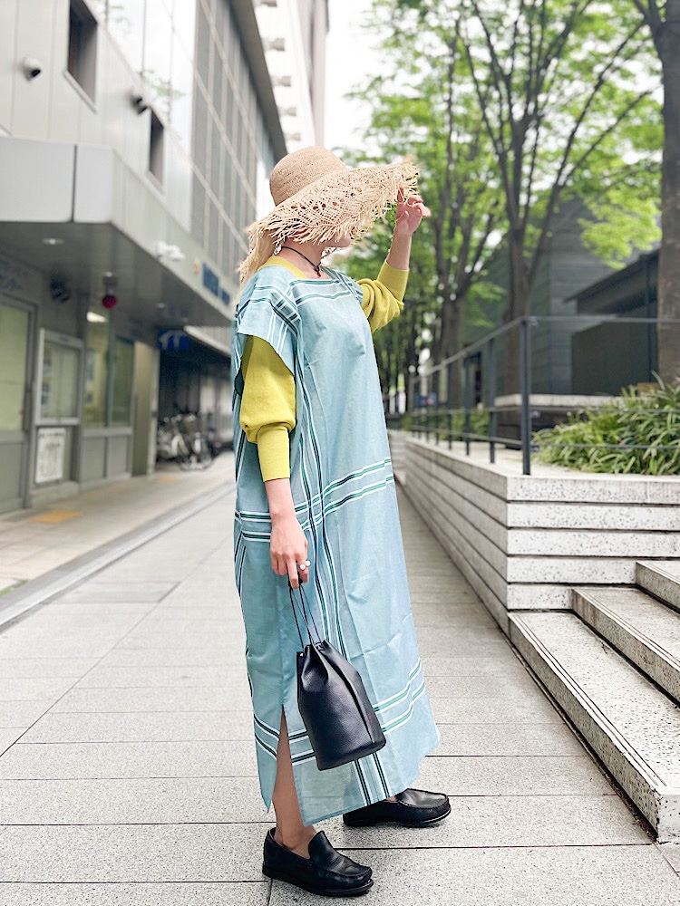 ・着こなしポイント : 今回は中にカラー合わせでカーディガンをレイヤードしてみました。夏はさらりと1枚で。