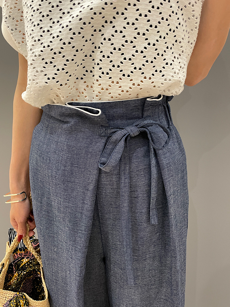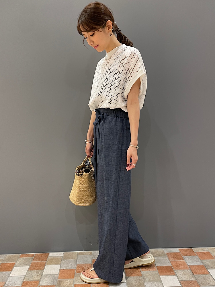 ウエストは丁度良いくらいのピッタリ感があり太もも周りはゆったりしていて楽ちんに履いて頂けます。
