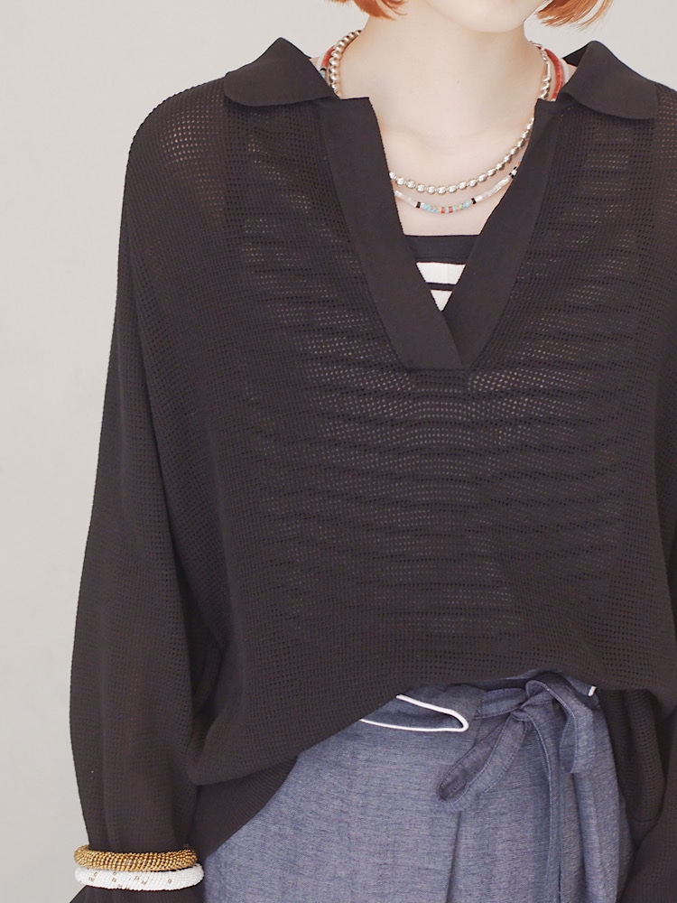 着用アイテム:コットンポリメッシュポロプルオーバー