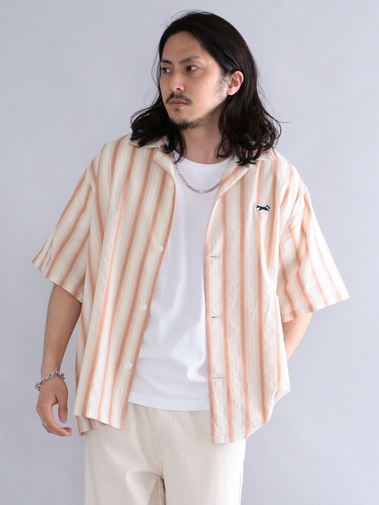 爽やかなカラーリングのストライプシャツを使用した夏コーデ