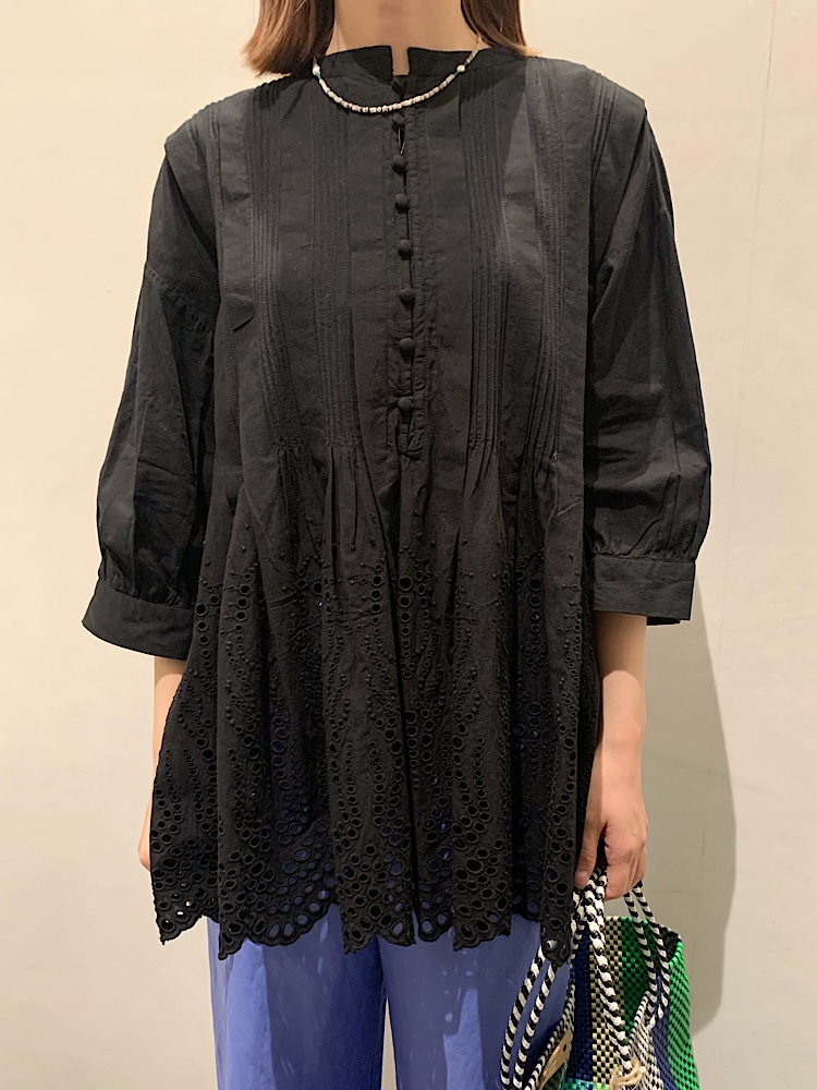 商品紹介:一見シンプルに見えますが、ピンタックや大きめのレースなど デザインがかわいい主役級の一枚です♪レースに抵抗がある方でもブラックなら甘くなりすぎず着やすいと思います。生地もコットン素材でこれからの暑くなる季節にさらっと着ることができます。
