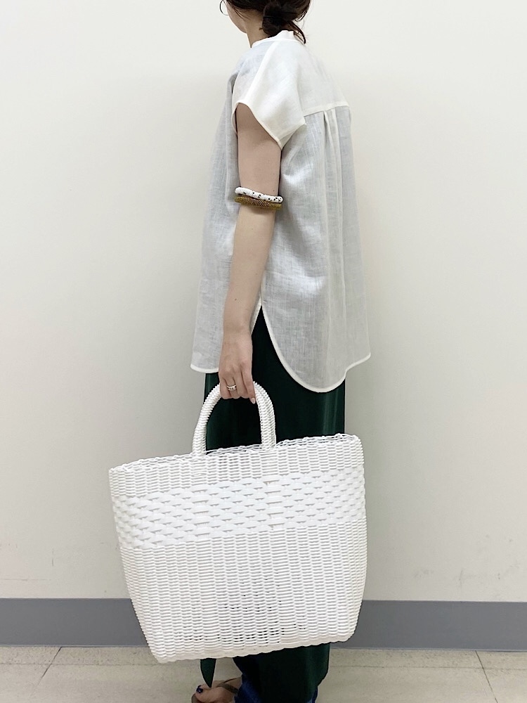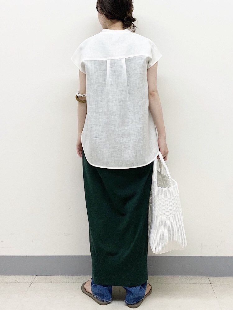 着心地:ハリのあるリネン素材です。ブラウスとして、羽織としても使えます。フレンチスリーブなので気になる腕周りもしっかりカバーできます。