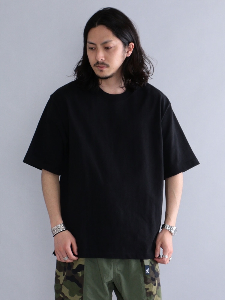 素材感:16/2天竺を使用し、通常のTシャツにはないヘビーウェイト。