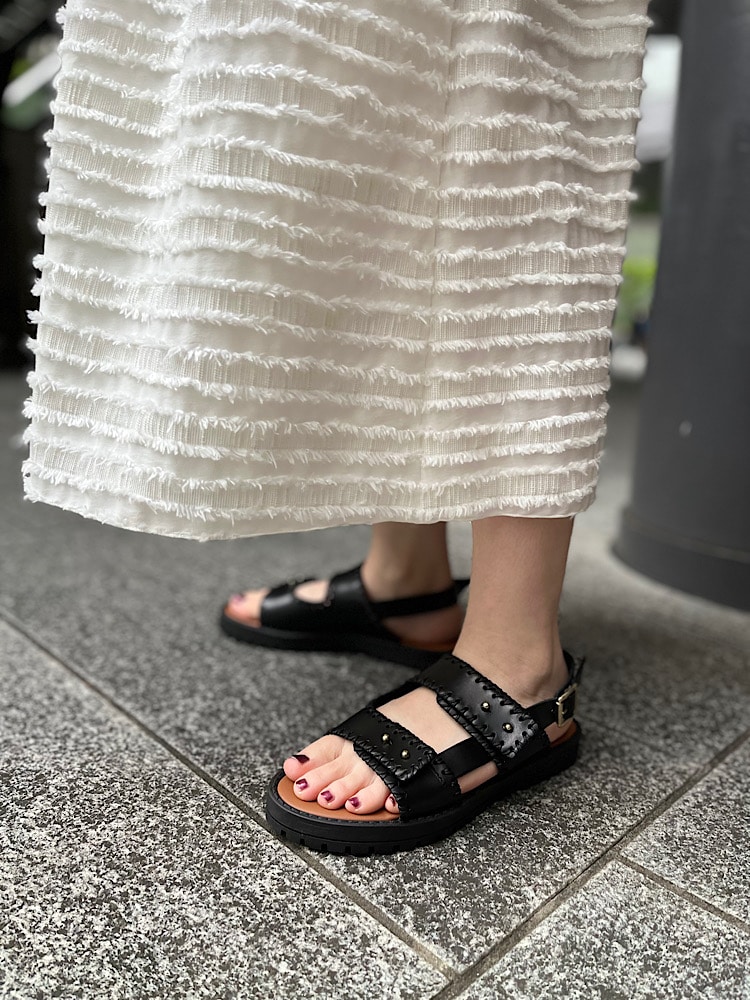 着心地:ジャガードの風合いが上品で立体感があります。ウエストはジャストなサイズ感で、タックが入っていて甘くなりすぎません。同色の裏地付きで、白でも透け感は気になりません。
