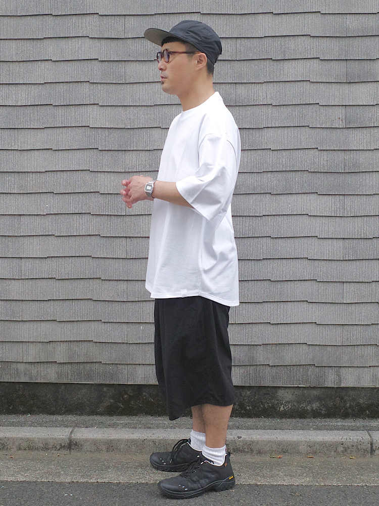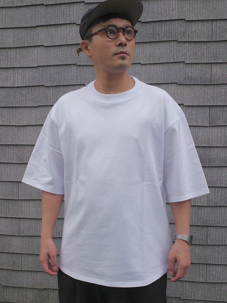 素材感/着心地:とても滑らかな質感となっており、シンプルですが存在感のある1枚となっております。裾のラウンドが特徴的でレイヤードにもオススメです。昨年のタイプを同じサイズで持っておりますが、袖の長さがやや長めにアップデートされており、より一枚着に適したモデルとなっております。