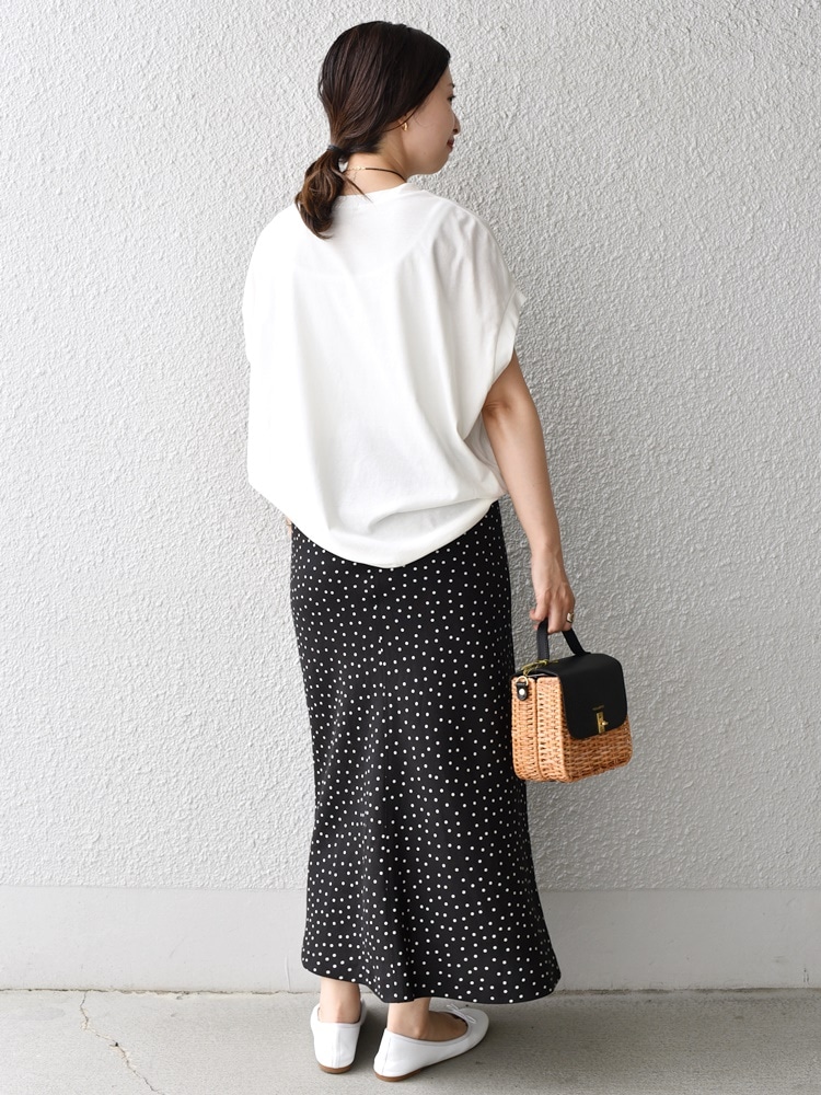 サイズ感:ボディラインを拾いにくいゆったりめのサイズ感。着丈はヒップにかかるくらい。