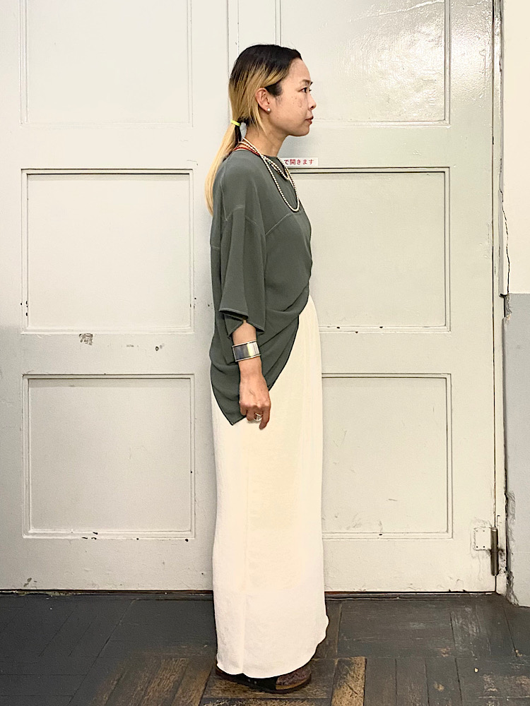 サイズ感:ウエストゴムですっきりしており、着丈もちょうど良いロング丈です。