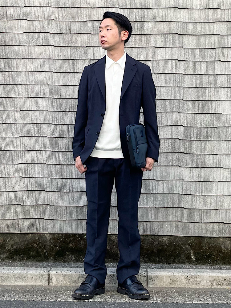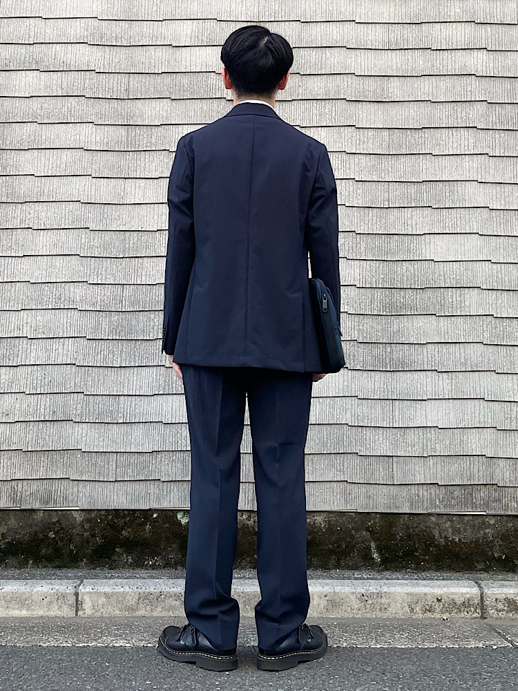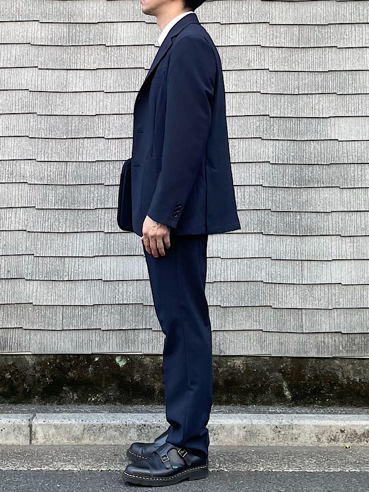 素材感/着心地:ポリエステル100%。ジャケットと同素材。少しゆとりのあるシルエットで穿きやすい。