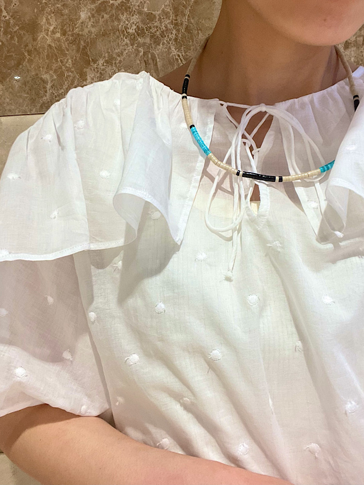 プリミティブな雰囲気の漂うアクセサリーをスパイスに。