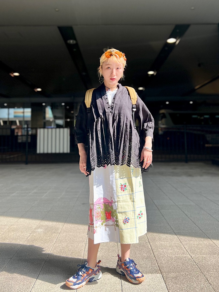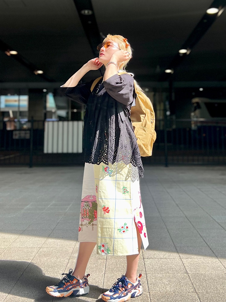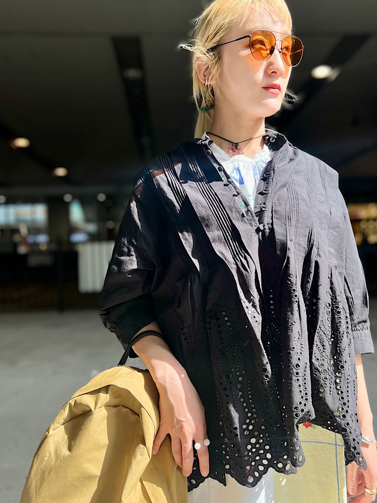 ・着こなしポイント : 今回はノースリーブのワンピースの上からレイヤードしてみました。黒は少し重くみえてしまうので、首元のボタンを開けたのがポイントです!