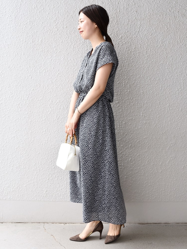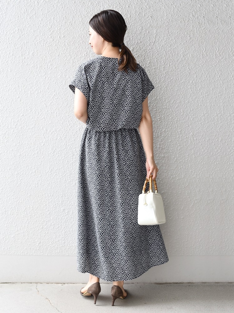 着心地:ウエストがゴム仕立てで、ウエストラインをきゅっと細く見せてくれます。