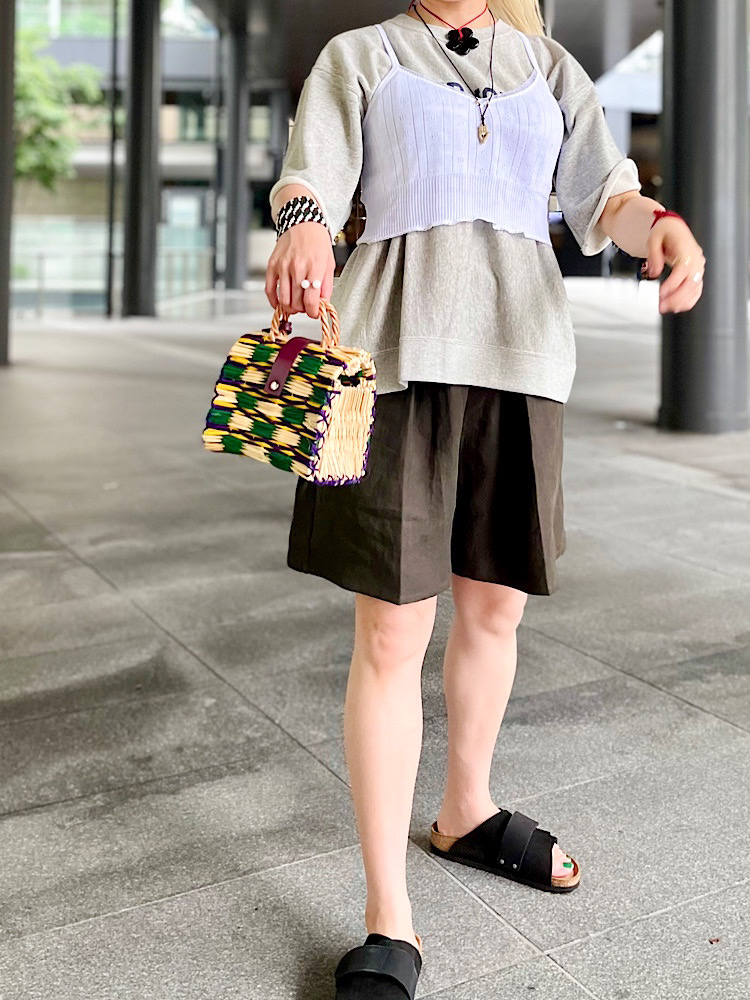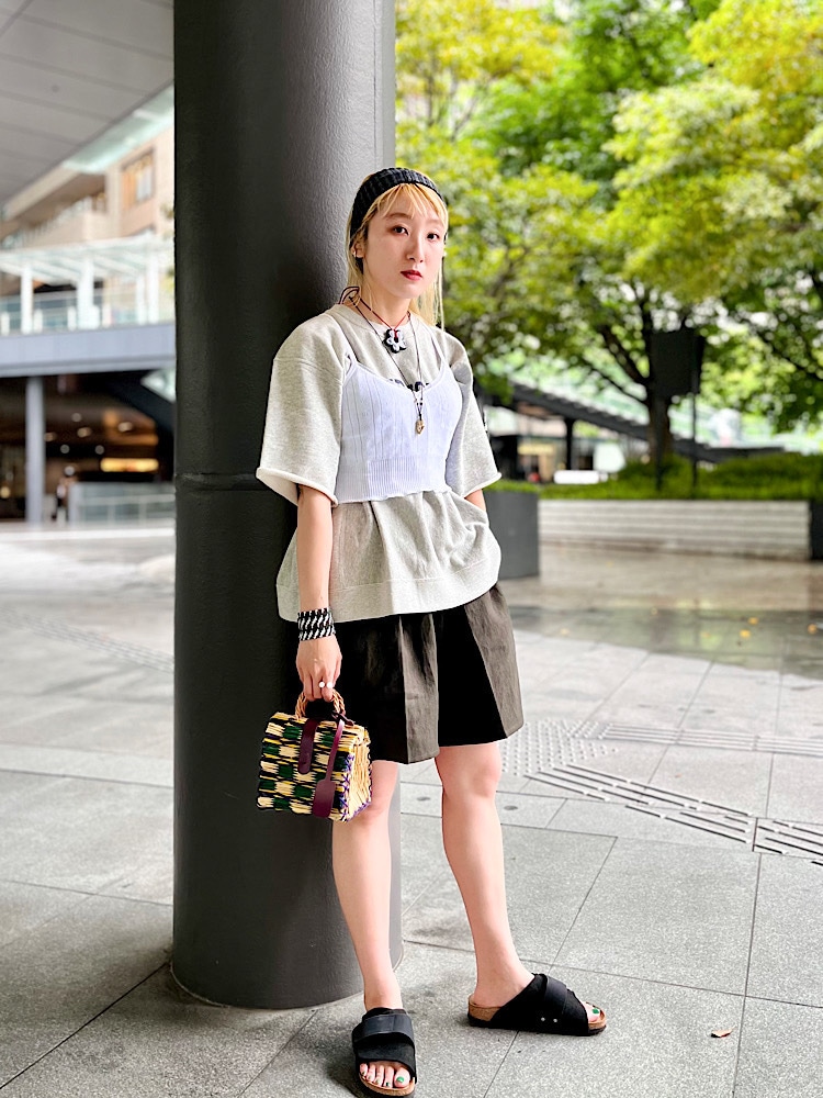 ・着こなしポイント : ゆったりとしたサイズ感なので、ショーツだけだとボーイッシュになりますのでキャミをレイヤードしてみました!