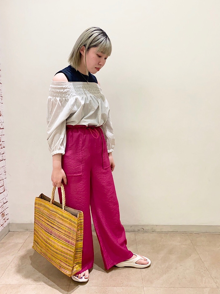 サイズ感:ゆったりとしたサイズ感です。首元がゴムなのでオフショルにしていますがそのまま着ていただくスタイルだとよりリラックス感が出ます。